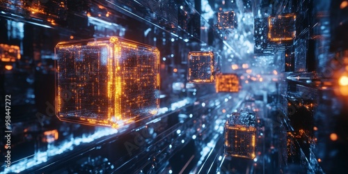 Fototapeta premium Glowing cubes in a futuristic tunnel.