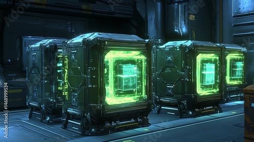 © MASJAB, Obraz premium Glowing Cubes in Scifi Facility.