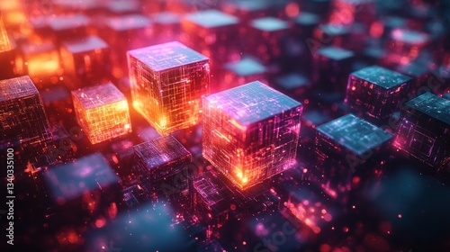 Fototapeta premium Glowing cubes with circuits on digital surface