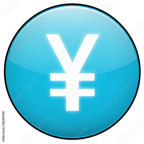 © Aka, Fototapeta premium Glowing cyan button featuring the Japanese Yen symbol for modern financial technology solutions
