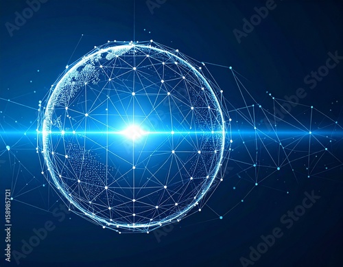 Fototapeta premium Glowing 3D sphere made of digital connections and bright light rays