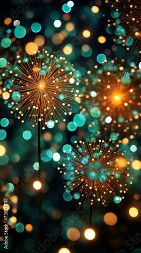 Naklejka premium Glowing Dandelions with Teal and Gold Bokeh