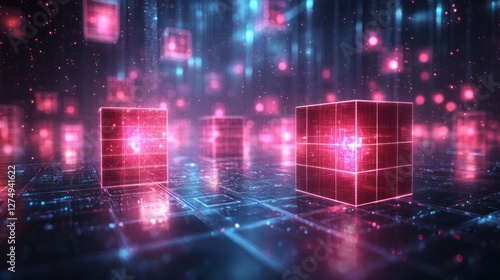 Fototapeta premium Glowing data cubes network cybersecurity digital background