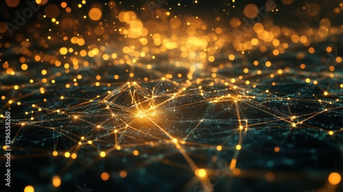 Obraz premium Glowing data points forming a complex network in a digital landscape