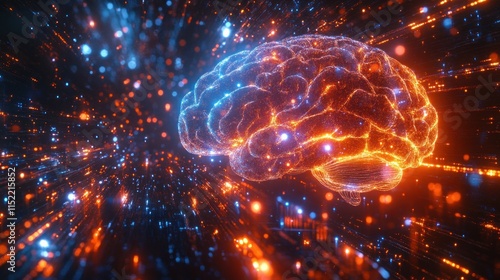 © Merry, Obraz premium Glowing digital brain, energy, neural network, data flow, AI concept.
