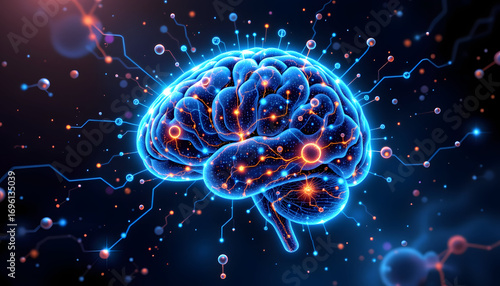 Fototapeta premium Glowing Digital Brain with Neural Network Visualization