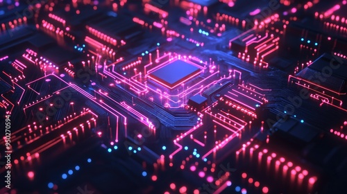 Fototapeta premium Glowing digital circuit board with cyber effects