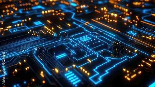 Fototapeta premium Glowing digital circuit board with cyber effects