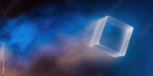 Fototapeta premium Glowing Digital Cube in Dark Space | Innovation, Data Intelligence & Creativity