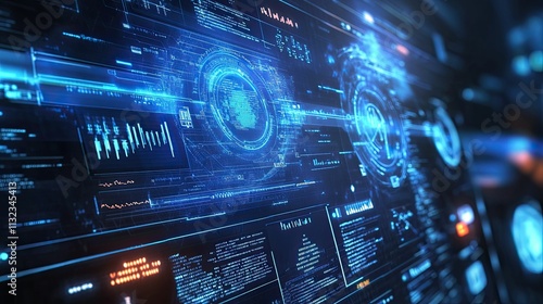 © kasmaran, Fototapeta premium Glowing digital data streams across screen.