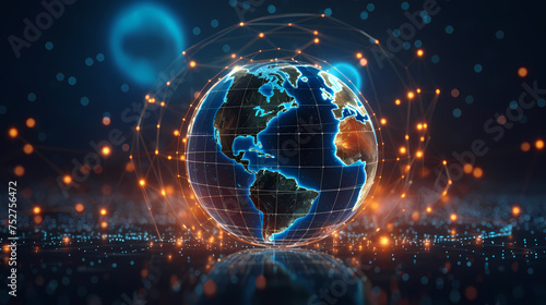 Obraz premium Glowing digital earth on futuristic interface