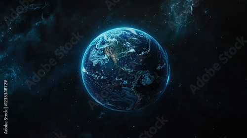 © Mahmud, Obraz premium Glowing Digital Earth with Illuminated Network on a Dark Background