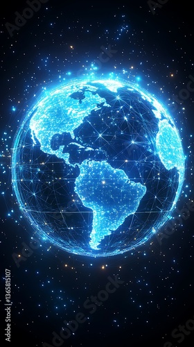 © marsel andika, Obraz premium Glowing Digital Earth with Network.