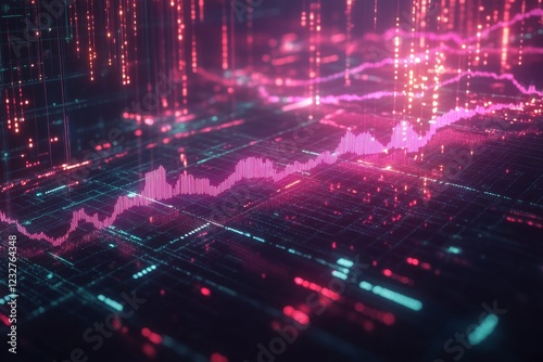 Obraz premium Glowing Digital Financial Chart in Minimalist Frame Showcasing Data Insights