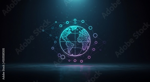 © Minh, Obraz premium Glowing Digital Globe Abstract Background