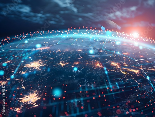 Fototapeta premium Glowing Digital Globe Representing Global Network Connectivity and Cyber...