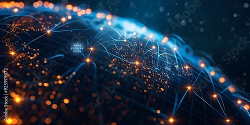 © Bussakon, Obraz premium Glowing Digital Globe Representing Major Technological Hubs and Global Connectivity Around the World