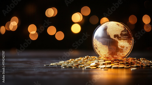 Fototapeta premium glowing digital globe surrounded by gold coins symbolizes global investment...