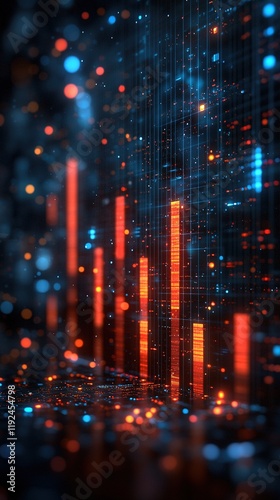 © Fridocha, Fototapeta premium Glowing digital graph in cyberspace with bokeh background