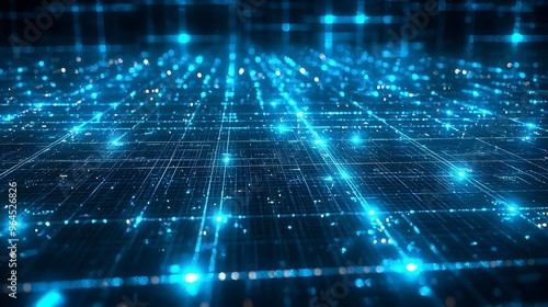 Naklejka premium Glowing Digital Grid Pattern - Futuristic Tech Matrix Background for Designs