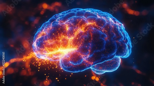 Fototapeta premium Glowing digital human brain with energy sparks.