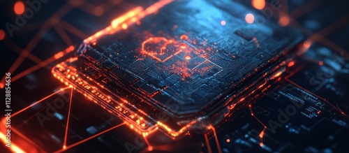 Obraz premium Glowing digital microchip close-up.