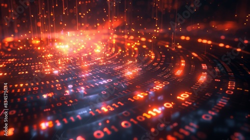 © Seksan, Fototapeta premium Glowing digital shield with binary code, emphasizing data protection