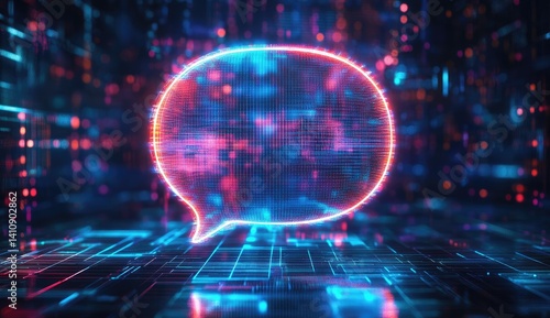 © num lock, Obraz premium Glowing digital speech bubble on a circuit board background