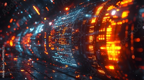 © Bussakon, Fototapeta premium Glowing digital timeline showcasing business data and milestones