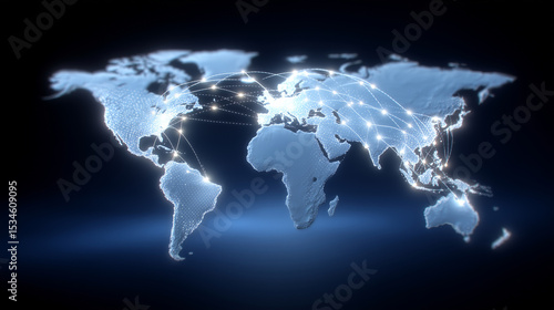 Obraz premium Glowing Digital Trade Routes Connecting Global Markets on World Map