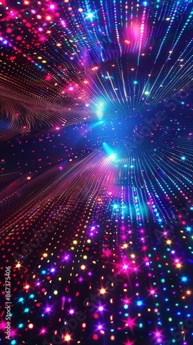 © Irfanan, Fototapeta premium Glowing Disco Party. Abstract colorful disco theme concept