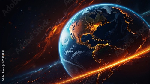 Obraz premium Glowing Earth from Space with Energy Arcs and Cosmic Lights V2
