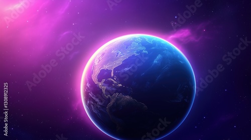 Obraz premium Glowing Earth from space with vibrant cosmic nebula and deep space background. astronomy and future exploration