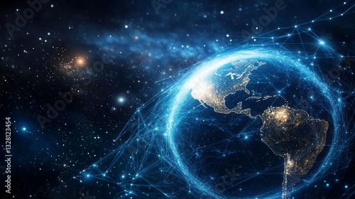 Obraz premium Glowing Earth Network in Dark Space