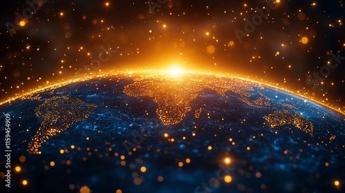 Obraz premium Glowing Earth sunrise, digital world map.
