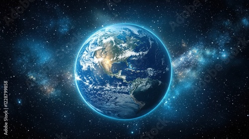 Fototapeta premium Glowing Earth viewed from space with stars and the Milky Way in the background