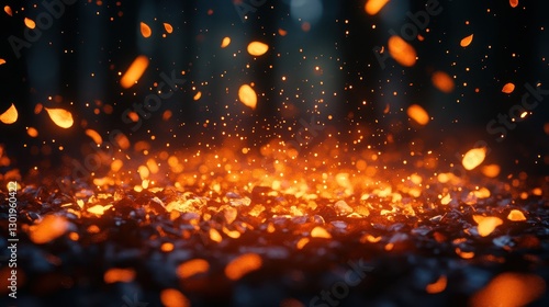 © jirasin, Naklejka premium Glowing Embers and Sparks at Night Captured in Dramatic Detail
