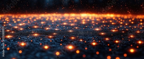 Fototapeta premium Glowing Embers Dance Across a Dark Surface, Creating a Mesmerizing Visual Spectacle; Abstract Art with Fire and Light Effects Evokes Mystical Feelings.