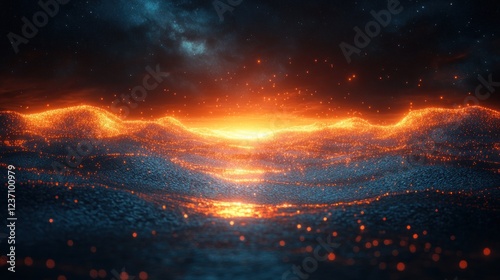 © ROY, Fototapeta premium Glowing embers landscape at night.