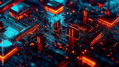 Fototapeta premium Glowing encryption firewalls protecting advanced infrastructure, intricate...