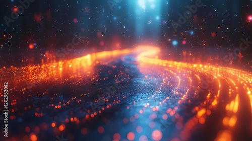 © banyu bening, Obraz premium Glowing energy trails, dark background, abstract, digital art, futuristic design