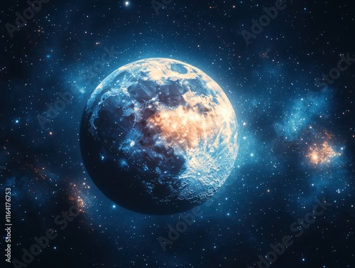 Fototapeta premium Glowing exoplanet in vibrant nebula.
