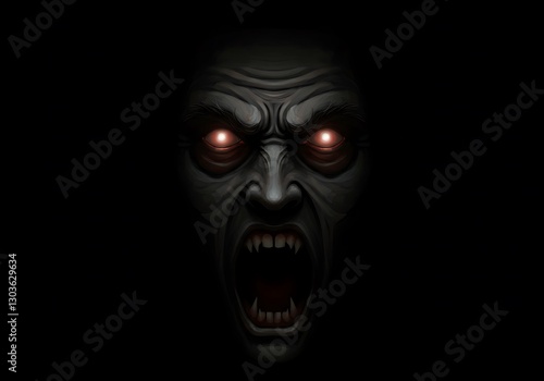 Fototapeta premium Glowing-Eyed Demon Face: Dark Fantasy Art