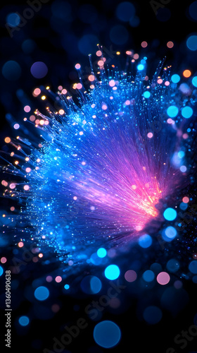 © ANTONIUS, Fototapeta premium Glowing fiber optic burst against dark bokeh background