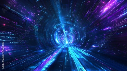 Fototapeta premium Glowing Fiber Optic Tunnel of Vibrant Lights and Data Transmission