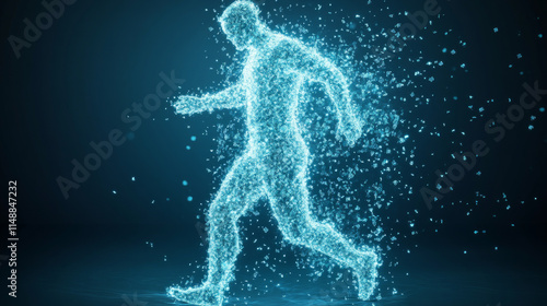Naklejka premium glowing figure composed of digital particles, representing motion and energy