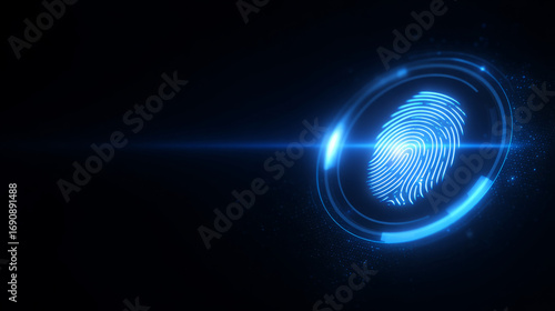 © Maximusdn, Obraz premium glowing fingerprint scanning interface with security confirmation and soft blue glow
