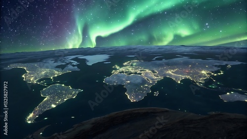 © theerachai, Naklejka premium Glowing Fireflies Create a Beautiful World Map Visualization