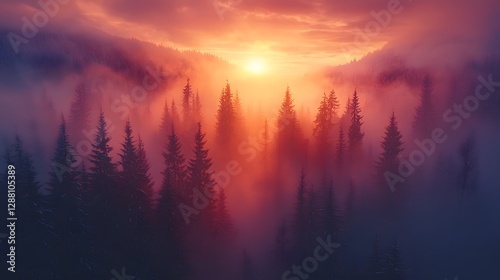 © Thares2020, Naklejka premium Glowing Frost Covered Trees in a Serene Winter Wonderland Sunset Landscape