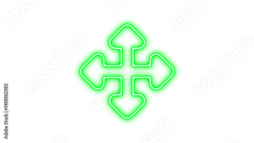 © Sqaviro, Obraz premium Glowing Geometric Symbol with Arrows, Neon up down left right icon glow with transparent background